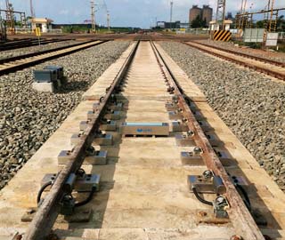 無梁式不斷軌自動軌道衡是機械結(jié)構(gòu)、電氣系統(tǒng)及軟件控制于一體的成套計量控制系統(tǒng),它由預(yù)埋板、承載器、稱重傳感器、接線箱、稱重儀表、鐵路車號識別系統(tǒng)、工業(yè)控制計算機、計量管理軟件等幾部分組成。